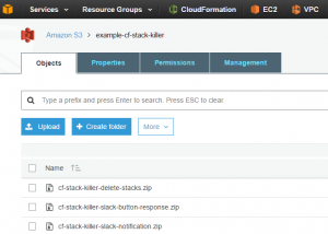 In order for the CloudFormation template to properly build the Lambas, each lambda code must be zipped and uploaded to an S3 bucket. The latest code can be found here: https://github.com/NiteDesign/CF-Stack-Killer
