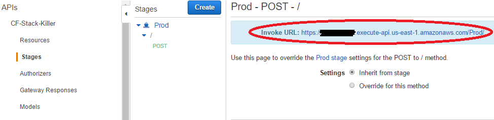 We now need to enable the Interactive Messages for the Slack App, this tells Slack where to send the request when the ‘do not delete’ button is pressed in the Slack message. We first need to get the API Gateway Invoke URL. Within AWS, browse to the CF-Stack-Killer API and then Stages.